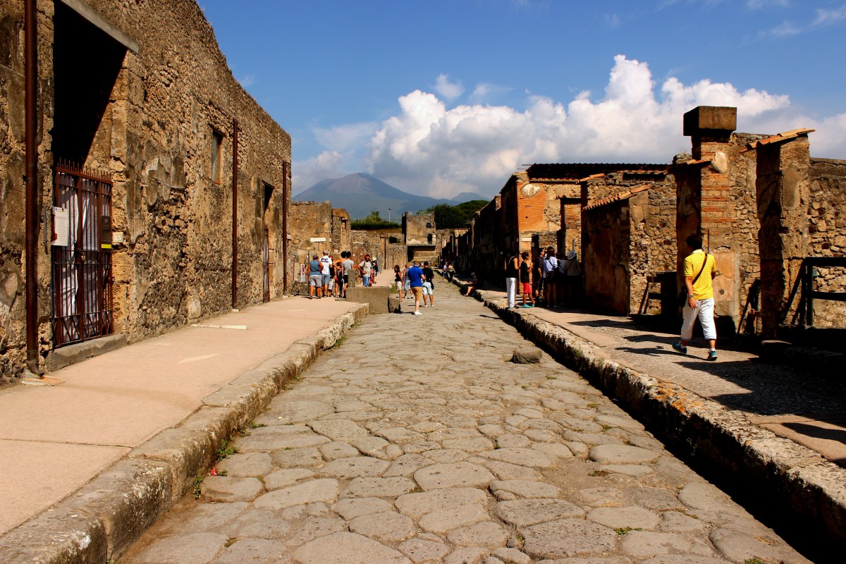 The ruined city of Pompeii, under the shadow of Mount Vesuvius