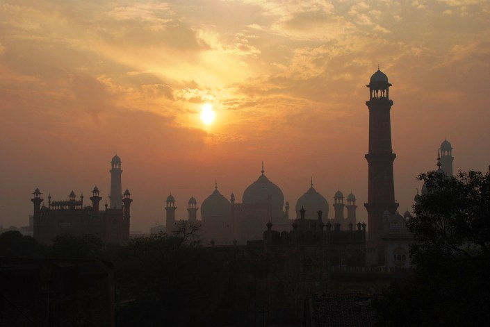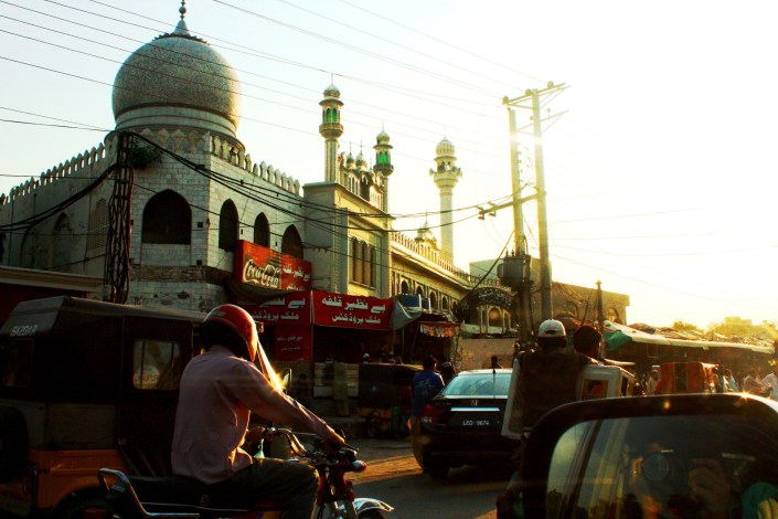 A Michael Jackson-lookalike doing pelvic thrusts at the traffic signals for five rupees, a drag queen chasing a group of truant schoolboys in khaki pants and white button-down shirts. Dimpled women with bangled arms and bulging handbags haggling with cloth vendors, jean-clad girls smoking sheesha at a sidewalk café, and serene old men in white prayer caps emerging from the neighborhood mosque, falling in step with the endless crowd as the minarets gleamed above with the last rays of the sun in the dusty orange Lahore sky.