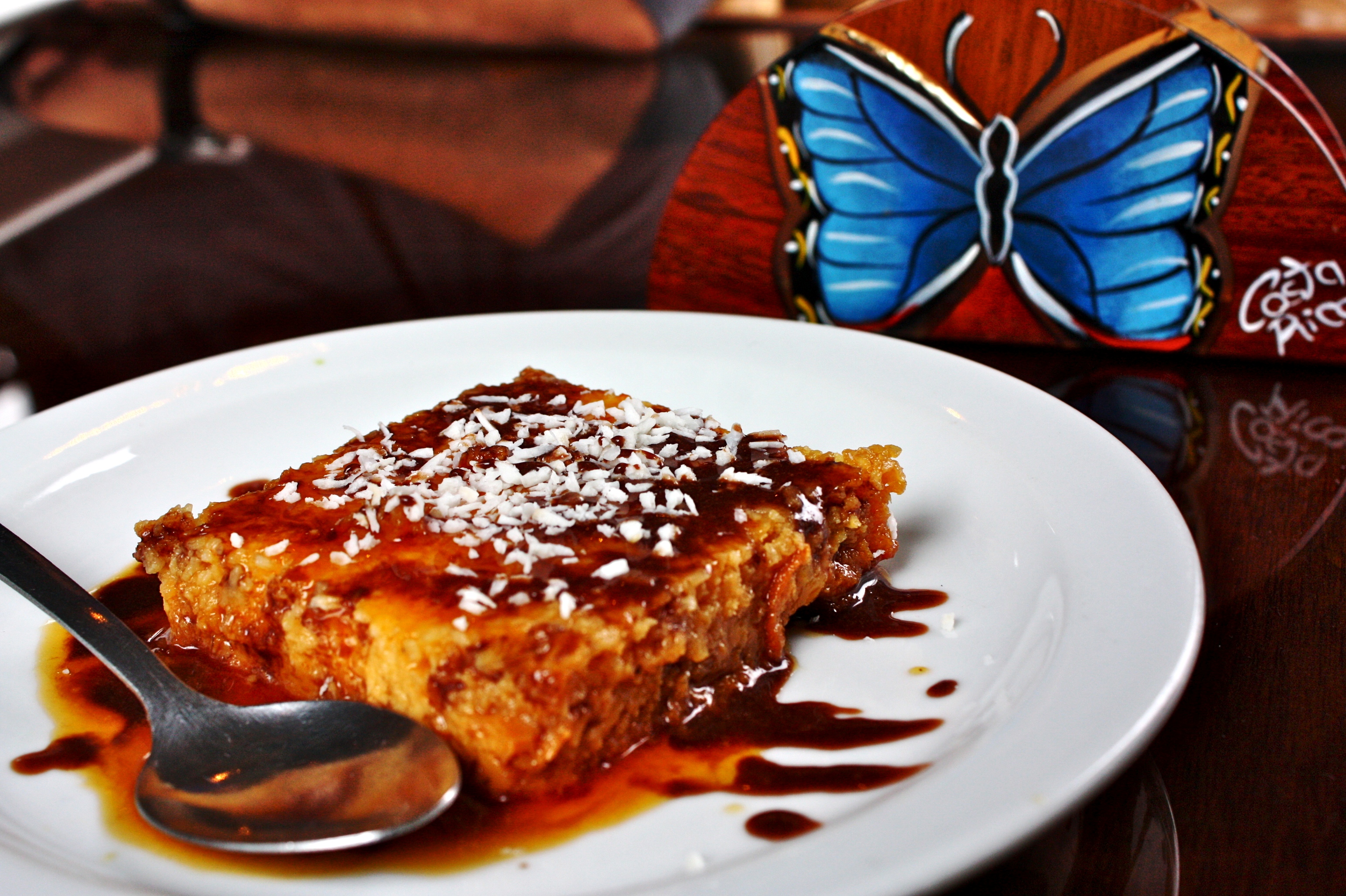 Back in Santa Elena town, we were famished (as usual), and made our way to a red-painted soda called Maravilla, recommended to us by the hostel-keeper Ronny. We ordered a typical Costa Rican lunch, casado, which consisted of the basic Latin American fare of rice and beans, with a portion of meat-in-gravy, fried plantains and salad. I polished down my casado con pollo with a tumbler of fresh Tamarindo – imli juice! – and followed it up with dessert at the beautiful Morphos restaurant.