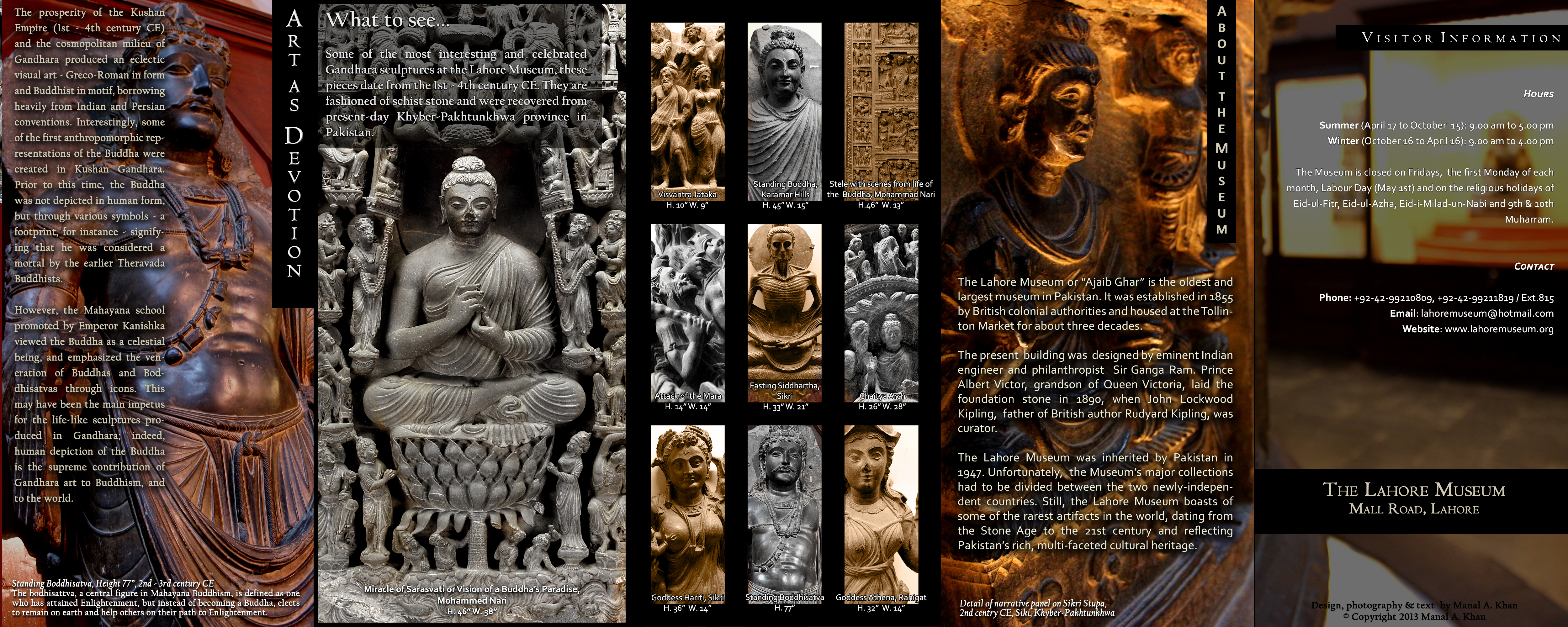 The brochure comprises of 5 double-sided pages, each page 10″ x 5″, with the renowned Fasting Siddhartha on the cover and Visitor Information at the back. I did the photography and text as well as brochure design. For the Lahoris, hopefully you’ll be able to get a nice, glossy hard copy of the brochure at the Museum soon!