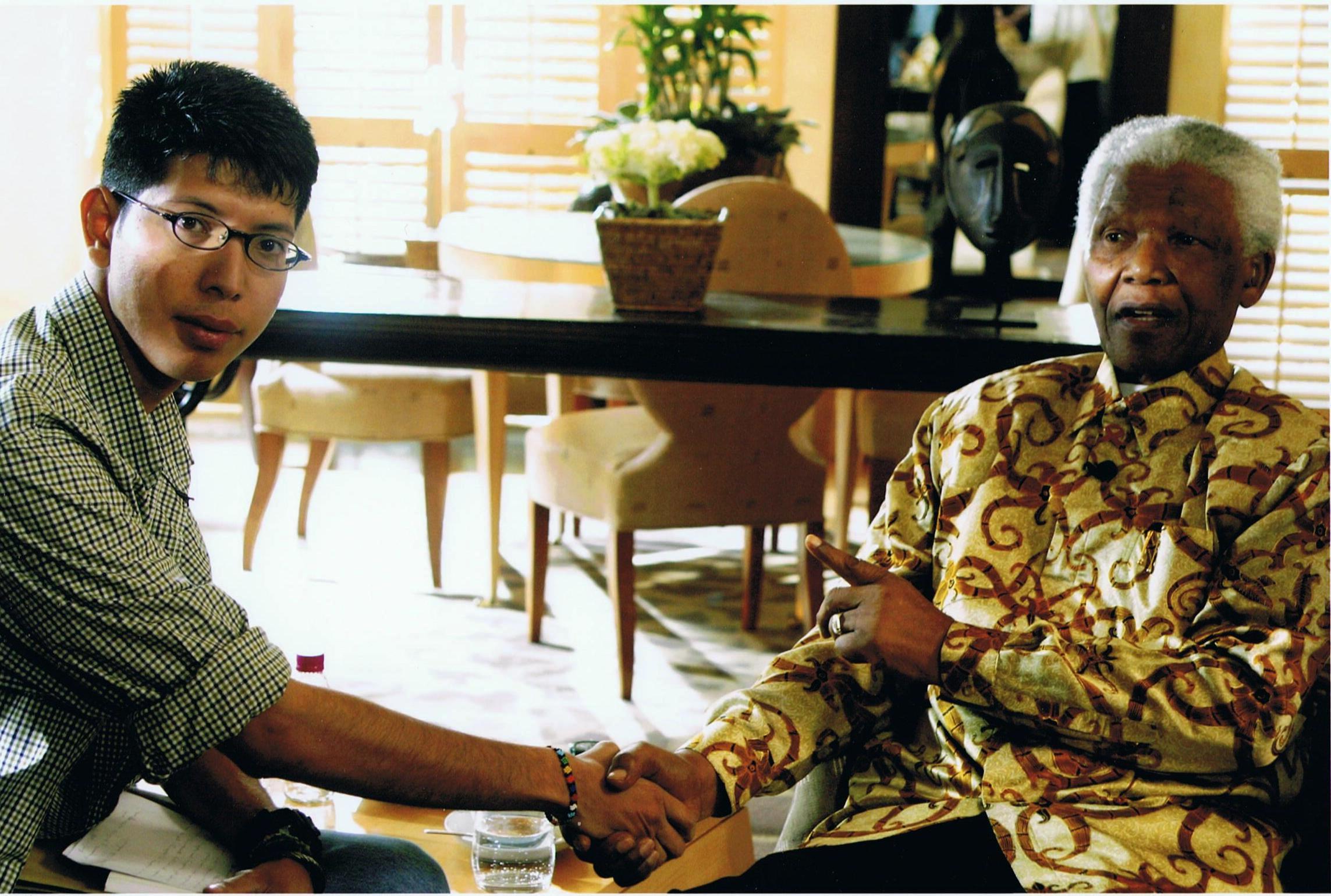 Min Zin with Nelson Mandela in Johannesburg, 2003