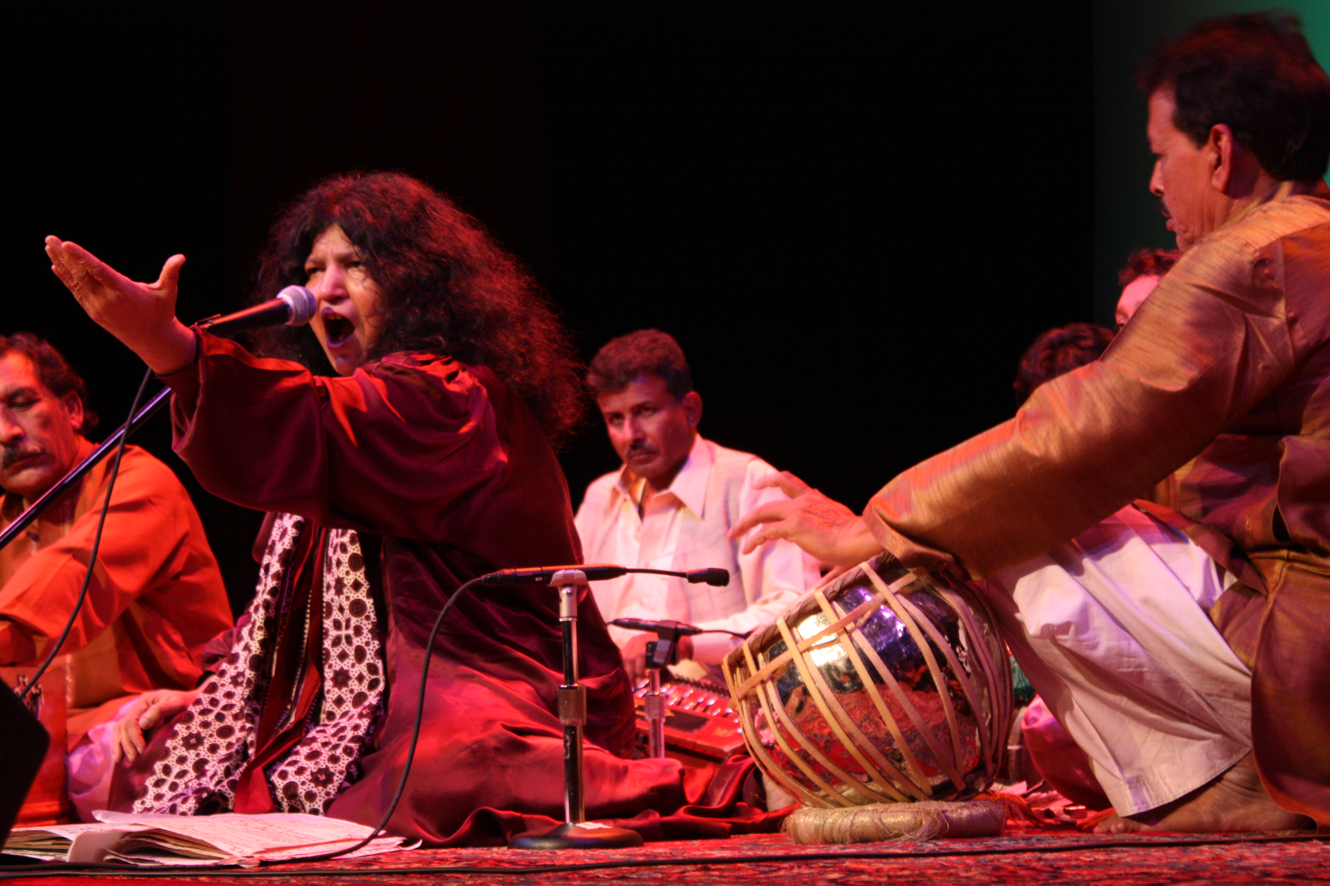 Abida Parveen ascended the stage to thunderous applause. Wearing a simple black kurta with an ajrak draped around her neck, her head a mass of curls, a humble smile on her lips, she began to sing – it was a spell. Her deep, husky voice resonated within your heart, so that you felt like she was talking to you, and when she held notes for minutes on end with unbroken strength and clarity, you found yourself holding your breath, and when she broke forth with a crescendo of music, you could just gasp Wah! or Wow!, depending on your generation, and sway your head and clap your hands like everyone else, overwhelmed by the power of her voice. From Tere Ishq Nachaya to Mast Qalandar and Hey Jamalo, when all the other performers joined her on stage for a lively finale, the energy was unstoppable. Everybody was on their feet, shoulder-to-shoulder, cab drivers and Ivy Leaguers, shopkeepers and investment bankers, housewives and politicians, miniskirts and hijabs; it was a rare sight, Pakistanis of every class and profession brought together in one surging crowd before one stage. They were brought together by one passion – our music and our Sufi heritage, and the spirituality that is embedded in our roots, no matter Punjabi, Sindhi, Baluch, Pashtun or other.