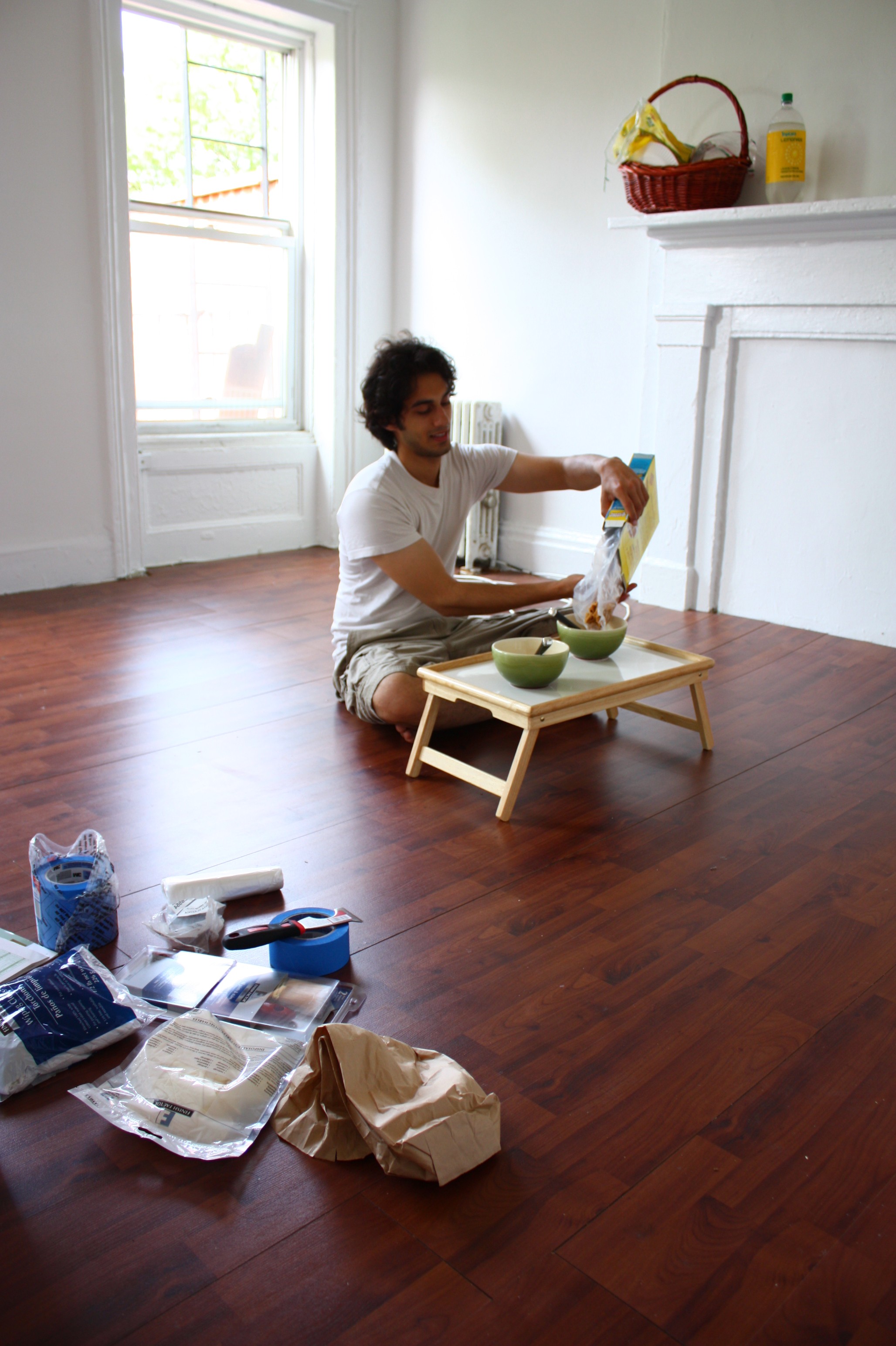 I’m sitting cross-legged on the dark brown laminate floor of our 3rd storey brownstone apartment in Cobble Hill, Brooklyn. To my right is a mound of tools – staple gun, drill, screwdrivers, pliers, nails, measuring tape, paintbrushes, and a number of pointy objects I can’t identify – and to my left, a mountain of half-opened boxes, bags and suitcases. Infront of me is the ustad – my husband – wearing paint-splattered khaki shorts and a white t-shirt, mounted on a step-ladder and swiping the bedroom wall with strong strokes of a roller brush soaked in “Kabuki Clay” – a rich, creamy white paint that looks so MilkPak delicious I’ve been tempted more than once to dip my finger in for a taste. “No, you can’t eat it,” my better half repeats with inexhaustible patience. He looks pretty good, I think. The rugged workman look, stubble, smeared forearms and all.